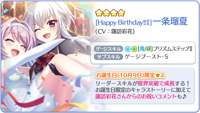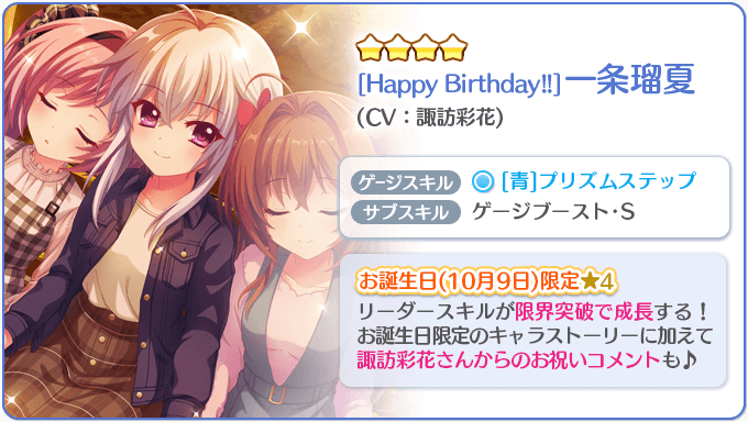 「Re:ステージ!」,“ピックアップガチャ”に瑠夏のお誕生日限定☆4キャラクターカードが登場