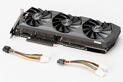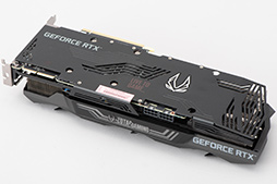 PCIe補助電源コネクタは,RTX 2080 Founders Editionのような12ピンではなく,一般的な8ピンが2基という構成だ。ただ,前述のとおり,基板自体のサイズはそれほど長くはないため,電源コネクタは,カードの中央寄りに実装されている。