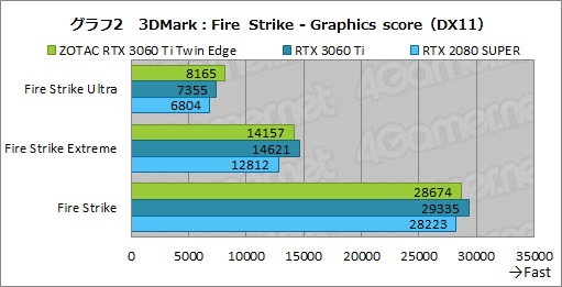 続いてグラフ2は,Fire Strikeの総合スコアから「Graphics score」を抜き出したものとなる。