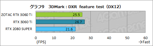 グラフ9は,もうひとつのレイトレーシングテストであるDirectX Raytracing Feature testの結果だ。