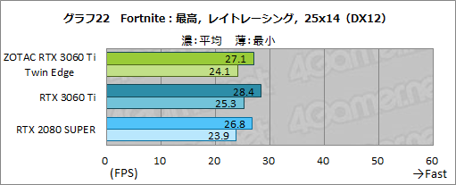 レイトレーシングとDLSSを有効にした「Fortnite」の結果をグラフ21〜23に示そう。
