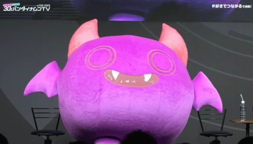 イベントがスタートすると,まず姿を現したのはシャニマスのプロデューサー,高山祐介氏。その後から,のそのそと現れたのが,初お披露目となる着ぐるみ,デビ太郎だ。シャニマスのマスコットキャラクターに対して,会場から「可愛い!」と歓声が上がっていた。