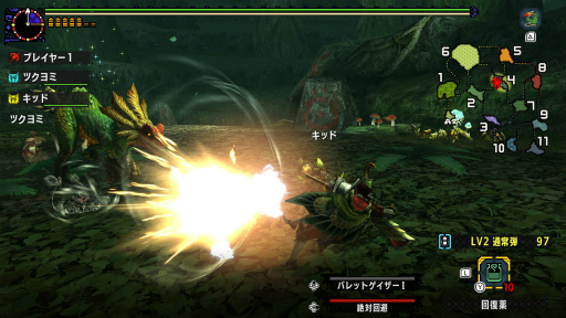 一方,狩技は画面下部のアイテム選択ウインドウの隣にゲージが配置された。これにより,「今,どの技が発動可能なのか」を把握しやすくなったと感じた。