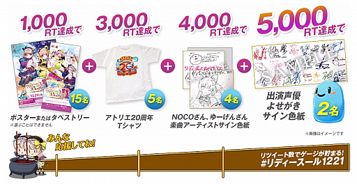 アトリエ公式Twitter(@GustAtelierPR)をフォローして「#リディースール1221」が付いたツイートをRT すると、プレゼントが豪華に! みんなでリディーとスールを応援しよう! 豪華景品は、RTいただいた方の中から抽選でプレゼント!