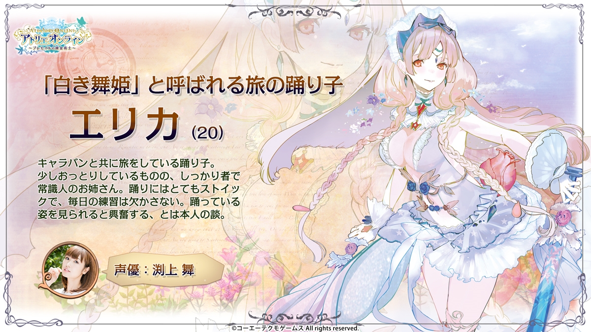 「アトリエ オンライン」,旅の踊り子“エリカ”など3人の新キャラクターを公開