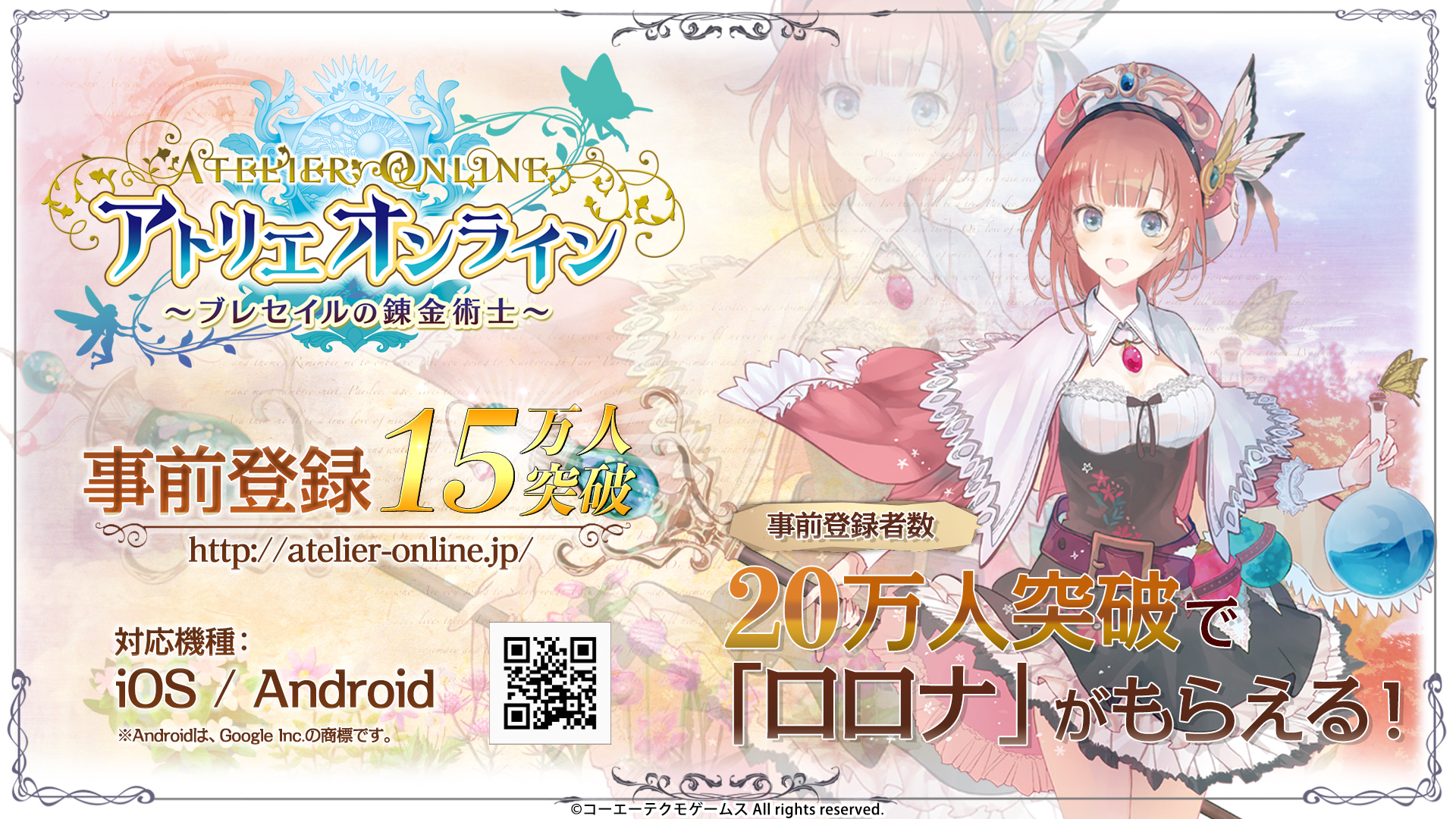 「アトリエ オンライン」,事前登録者数が15万人を突破。特典としてロロナの武器や衣装が配布