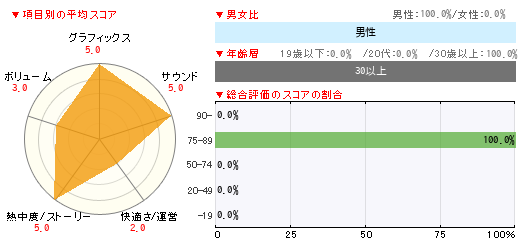 グラフィックス サウンド 快適さ/運営 熱中度/ストーリー ボリューム 5 5 2 5 3