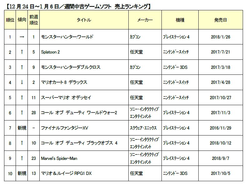 ゲオ,年末年始の中古ゲームソフト週間売上ランキングを公開。1位はモンハン