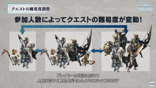 そのほかにも「ICEBORNE」では,新たに「2人プレイ時」の難度が追加されました。「WORLD」では,難度が「ソロ時」と「マルチプレイ時」に変わるだけでしたよね。