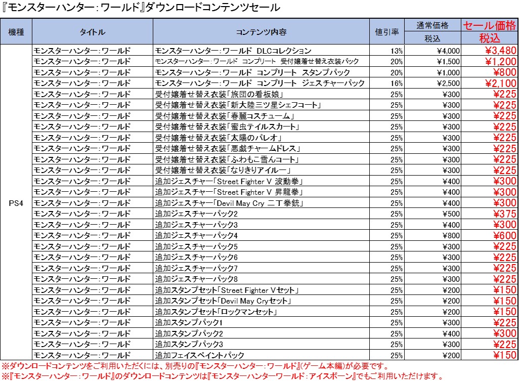 PS4版「MONSTER HUNTER: WORLD」のDLCセールがPS Storeで本日から開催
