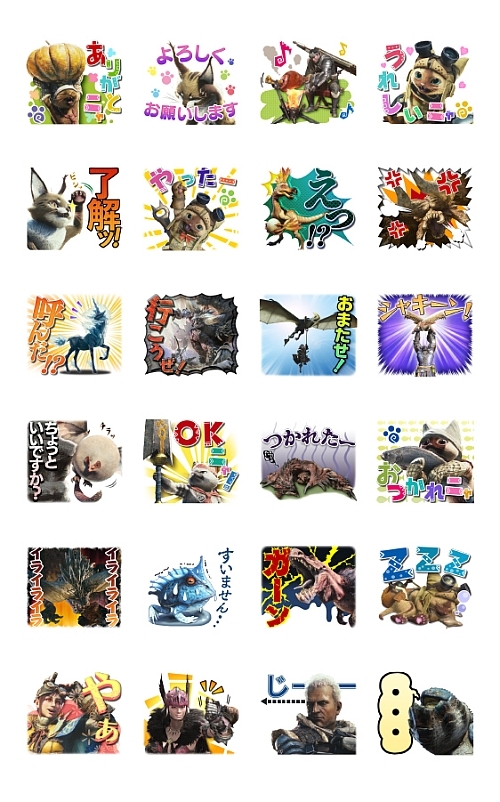「MONSTER HUNTER:WORLD」のLINEスタンプが本日配信開始。アイルーやネルギガンテなどの音声付きスタンプ24種がラインナップ