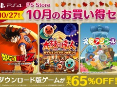 バンダイナムコエンターテインメントは本日,SIE主催の「10月のお買い得セール」に合わせて,PS4向けダウンロード版タイトルのセールを実施した。期間は10月27日まで。期間中は,「ドラゴンボールZ KAKAROT」が45%オフ,「太鼓の達人 セッションでドドンがドン!」が50%オフとなる。