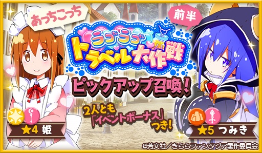 「きららファンタジア」,ピックアップ召喚&イベント“ラブラブトラベル大作戦”が開催