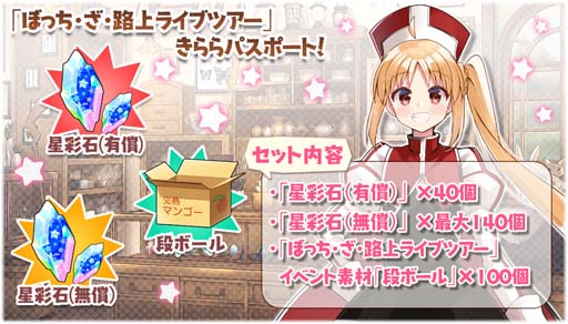 ※「きららパスポート」を購入することで、★4「伊地知 虹夏」を仲間にするために必要な量の素材「段ボール」も入手することができます。