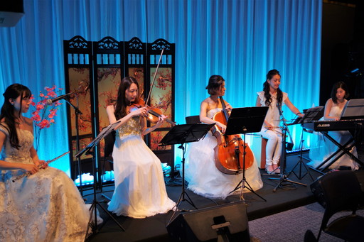パブリッシングプロデューサーの劉氏(写真中央)。左右には,中国の伝統的な衣装である“漢服”に身を包んだコスプレイヤーたち