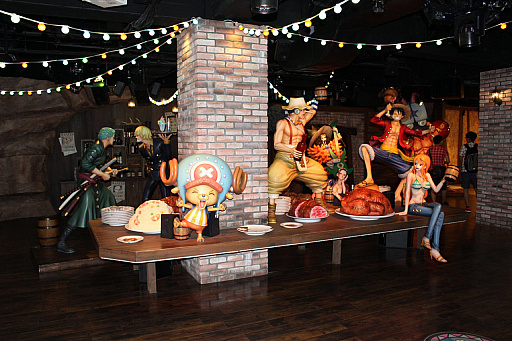 東京ワンピースタワーの入口では,ルフィとチョッパーが迎えてくれる