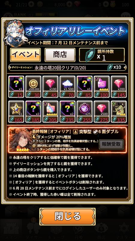 「ロードオブダイス」,★5ダイサー「オフィリア」がもらえるリレーイベントが開催