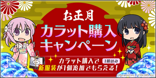 1月1日(金)0:00から1月3日(日)23:59の間、「カラット × 200個」で