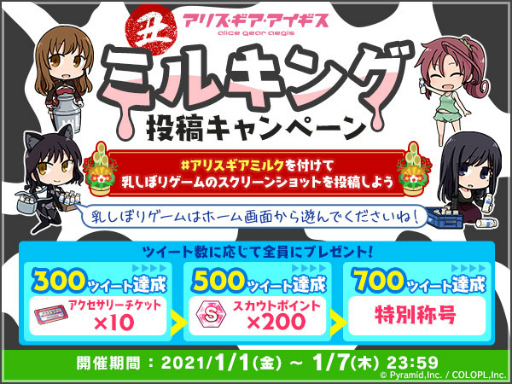 ミニゲーム「ミルキング」の復刻に合わせて、「ミルキング投稿キャンペーン」を開催いたします。