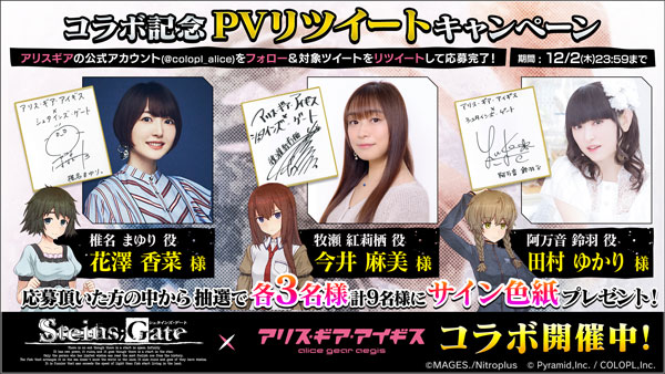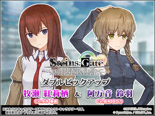「アリス・ギア・アイギス」と「STEINS;GATE」のコラボが開催。牧瀬紅莉栖らが登場する限定スカウトが開催