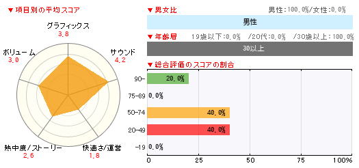グラフィックス サウンド 快適さ/運営 熱中度/ストーリー ボリューム 3 3 1 2 2 -