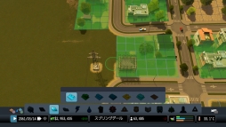 道路を敷設すると、その道路に面した土地を区画として指定できるようになります。市民の需要を示すゲージを参考に現在必要な区画を整備していきます。整備された区画には、そのタイプに応じて建物が建ち始めます。建物にはレベルがあり、公共サービスの充実度や地価、区画の配置バランス等が密接に相互関連しながら自動的に変動します。