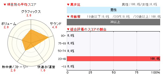 グラフィックス サウンド 快適さ/運営 熱中度/ストーリー ボリューム 3 4 1 2 2