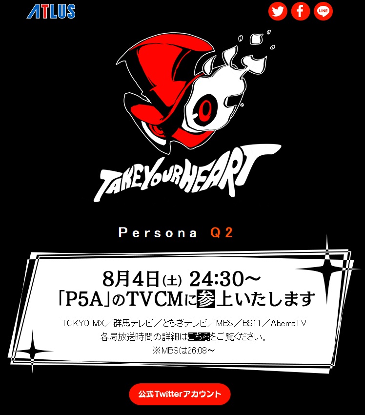 「ペルソナQ2(仮称)」の初映像と発売日が,8月5日放映のTVアニメ「ペルソナ5」のCM枠内で公開