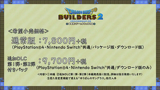 Switch。以下,DQB2)の公式番組を配信した。発売日が12月20日と発表されたほか,開発陣によるゲーム序盤のデモプレイによって細かな仕様なども明らかになった番組の模様をレポートしよう。