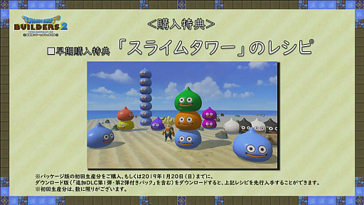 ゲーム中でスライムタワーを作れるレシピが早期購入特典となる