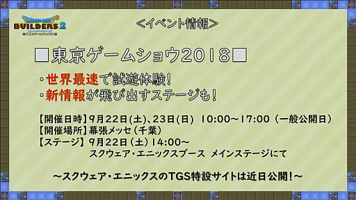 「ドラゴンクエストビルダーズ2 発売日発表会」視聴ページ