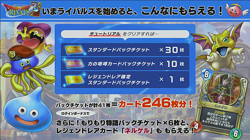 「ドラゴンクエストライバルズ」では,スタート特典としてカード246枚ぶんのチケットがプレゼントされる
