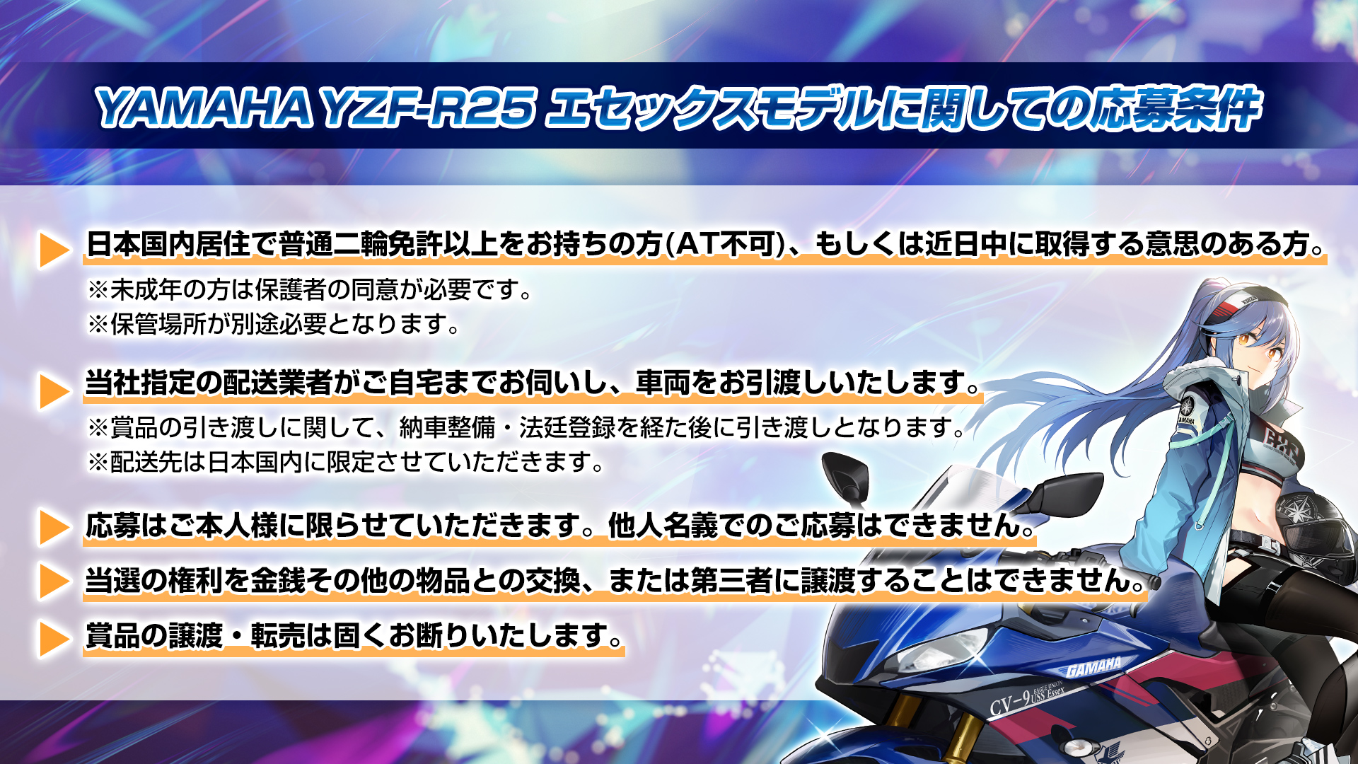 世界に1台の「YAMAHA YZF-R25 エセックスモデル」が当たるチャンス。「アズレン」でフォロー&RTキャンペーンが開催中
