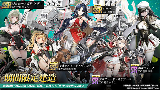 上記艦船のうち,エマヌエーレ・ペッサーニョはイベントアイテム「博覧会記念コイン」の累計報酬で,残る5名はイベントと同時開催される期間限定建造から入手を狙える。なお,ジュゼッペ・ガリバルディはピックアップ対象外となるものの,博覧会記念コインと交換可能とのことだ。