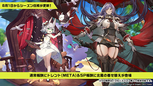 さらに,シーズン任務が8月1日に更新される。通常報酬で「トレント(META)」を入手でき,クルーズパスを購入するとSP報酬で「北風」の着せ替えも獲得できるという。