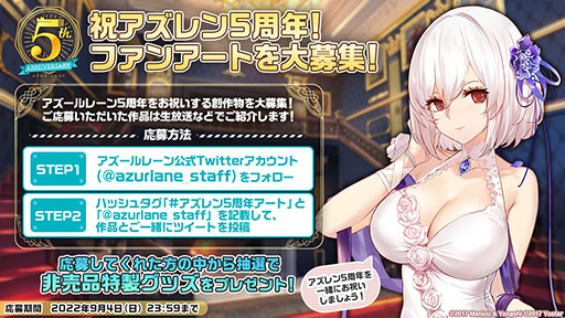 続いては,アズールレーンの配信5周年に関する取り組みについてだ。ここでは,9月に予定している