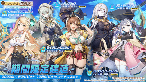 期間限定建造から登場するとのこと。なお,クラウディア・バレンツは建造のピックアップ対象外となるものの,
