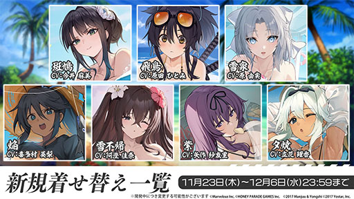 さらに,新作の着せ替えも登場する。今回は飛鳥らコラボキャラ7名に加えて,高雄の着せ替え