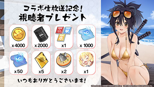 今回の生放送を記念して,資金4000と燃料2000など,さまざまなアイテムが配布される