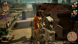 ![]() カウントがゼロになるとリヴァイによってプレイヤー巨人は駆逐される。こうなる前にリヴァイの攻撃対象を変更させておく必要がある |