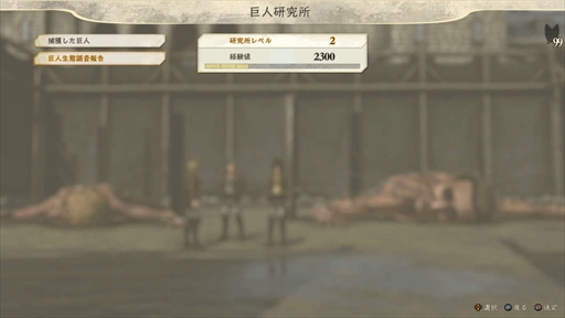 今回のアップデートにて、巨人研究所内に新モード「巨人生態調査報告」が追加されております。このモードでは自由の翼ゲージを1つ消費して、「捕食」モードを一人で練習することが可能です。またその時のプレイ内容に応じて、巨人研究所の経験値を獲得することもできます。