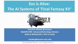 この講演はタイトルどおり,スクウェア・エニックスの「FINAL FANTASY XV」(PC/PS4/Xbox One 以下,FFXV)において使われているAI技術について,大きく7項目に分けてその概論を語るというものだ。スクウェア・エニックスのリードAIリサーチャーである三宅陽一郎氏が,全178ページのスライド(途中に複数本の動画あり)を30分で語り尽くしたこの濃密な講演の模様を紹介したい。