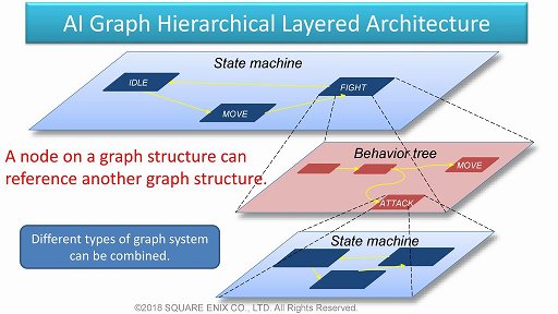 スクウェア・エニックスのAIチームが「ゲームデザイナーが自分でAIを設計・設定できるツールを作る」方向に進んだのは,その判断あってのことではないだろうか。