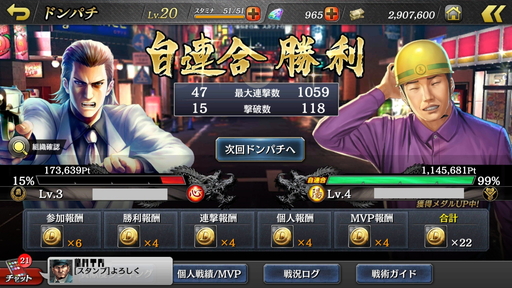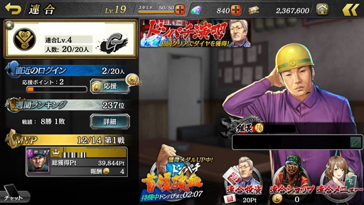 ……と,報酬の話を先にしてしまったが,具体的に「ドンパチ」がどういったものなのかも紹介していこう。基本的には,開催時間になったら連合同士が対決し,勝利することで連合のグレードが上がっていくというものだ。