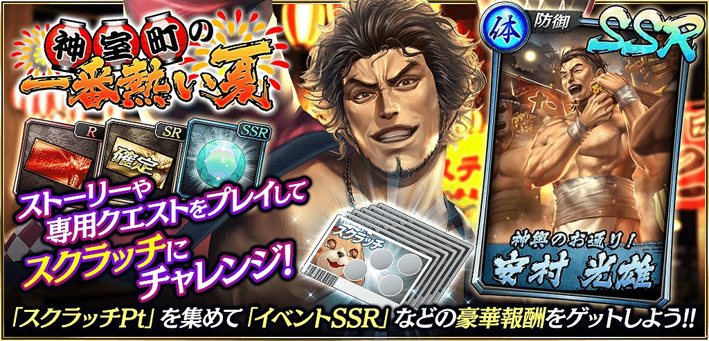 「龍が如く ONLINE」,春日一番と秋山 駿,安村光雄が祭り衣装で登場。第一回ドンパチ頂上決戦も開催中