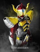仮面ライダーバロンは,近接特化型の攻撃手段を多く持つ「バナナアームズ」が基本のフォーム。スキルはアームズチェンジで,「レモンエナジーアームズ」に変身して遠距離攻撃を放てるようになり,遠近両方の間合いに対応可能となる。