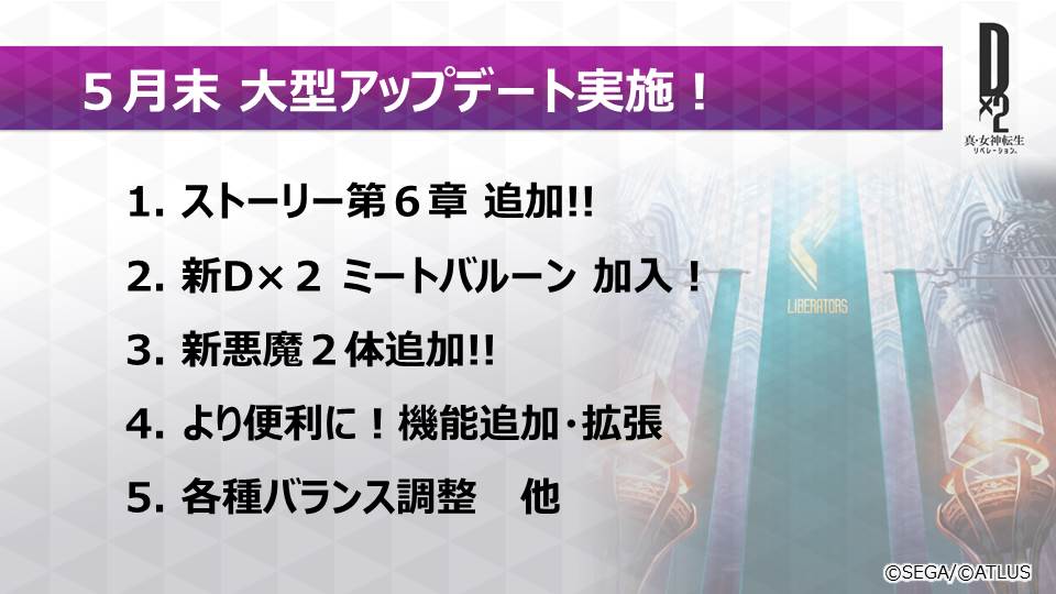 「D×2 真・女神転生 リベレーション」,ストーリー第6章や新悪魔「マンセマット」の実装など,次期アップデートの情報が公開に
