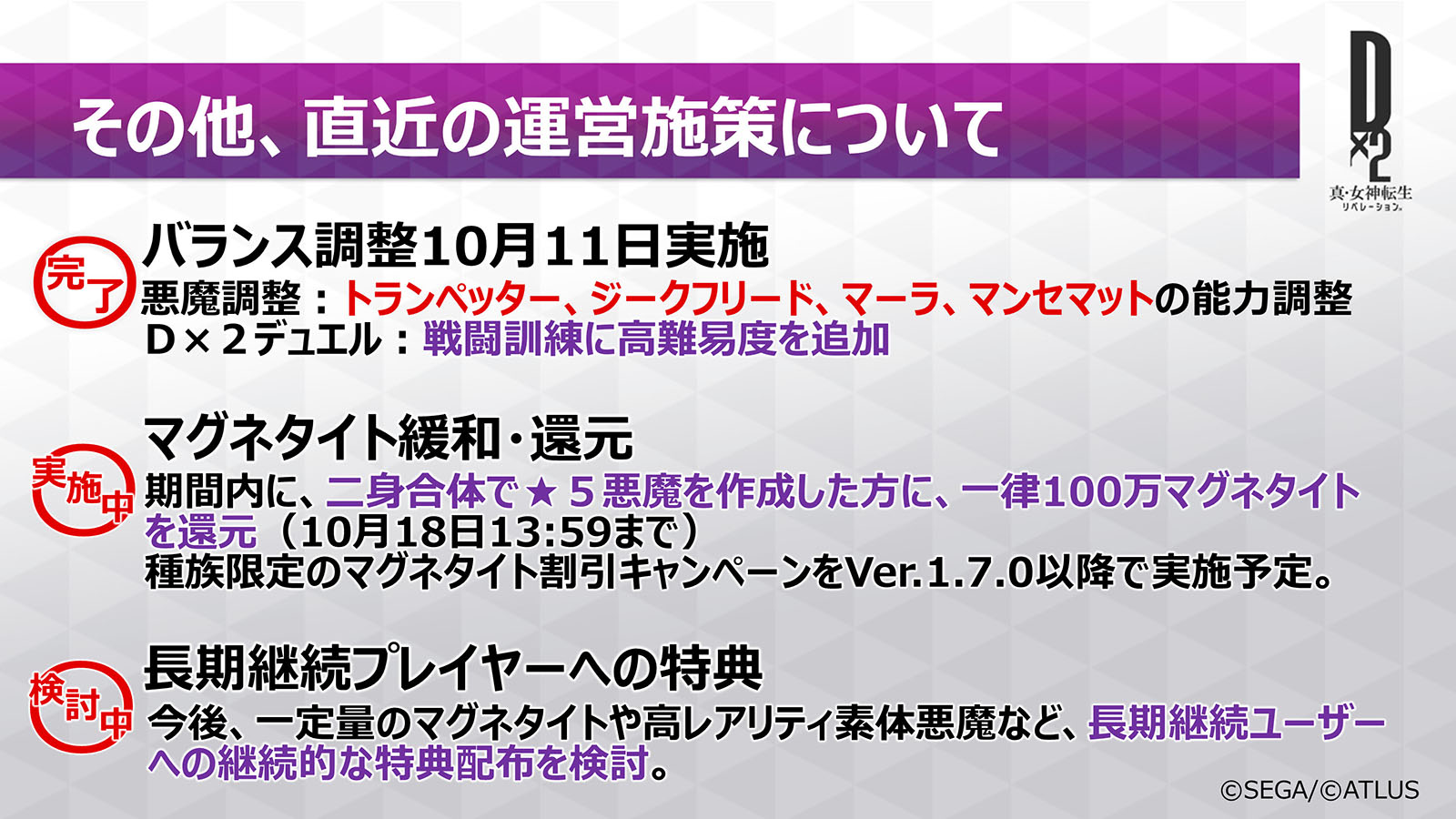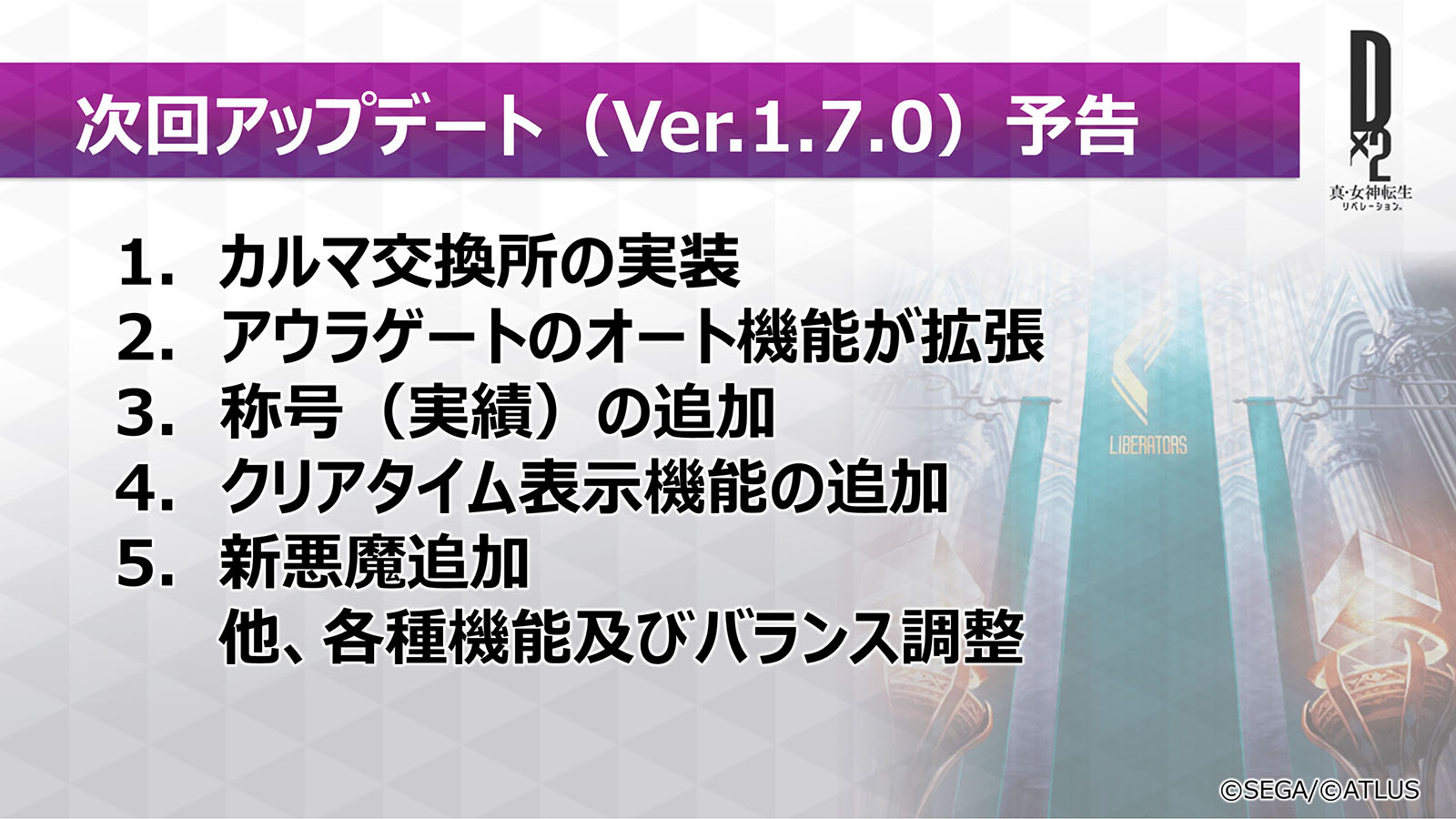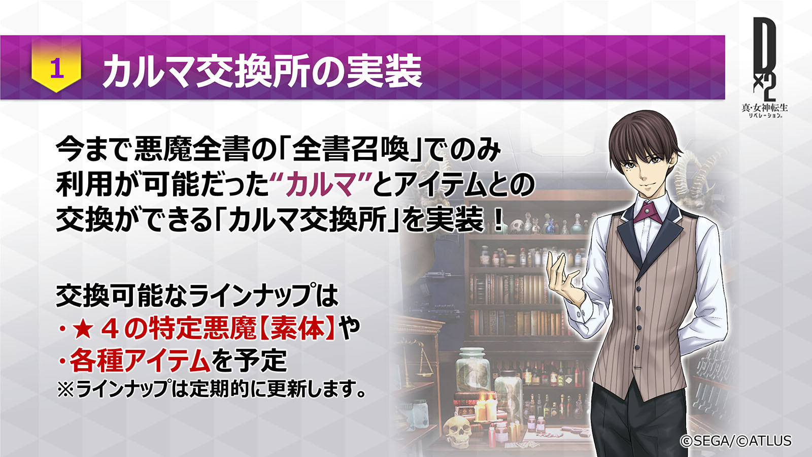 「D×2 真・女神転生 リベレーション」,次回アップデートで新機能「カルマ交換所」の実装などを予定。公式放送で発表された最新情報をお届け
