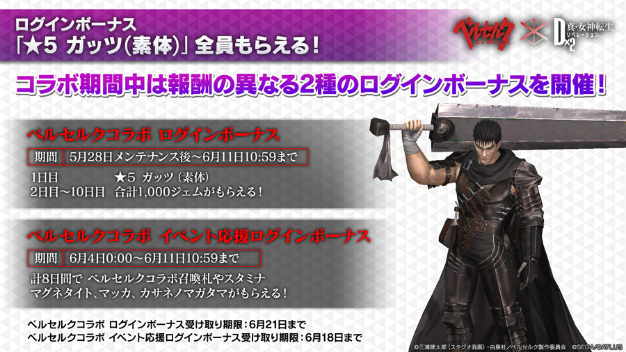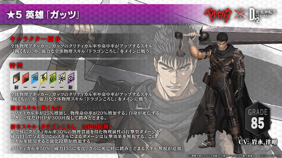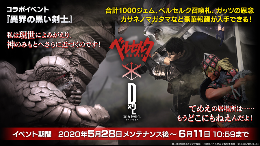 「D2メガテン」,アニメ「ベルセルク」コラボで登場するガッツ,シールケら4名の詳細が明らかに。最新情報が発表された公式生放送をレポート