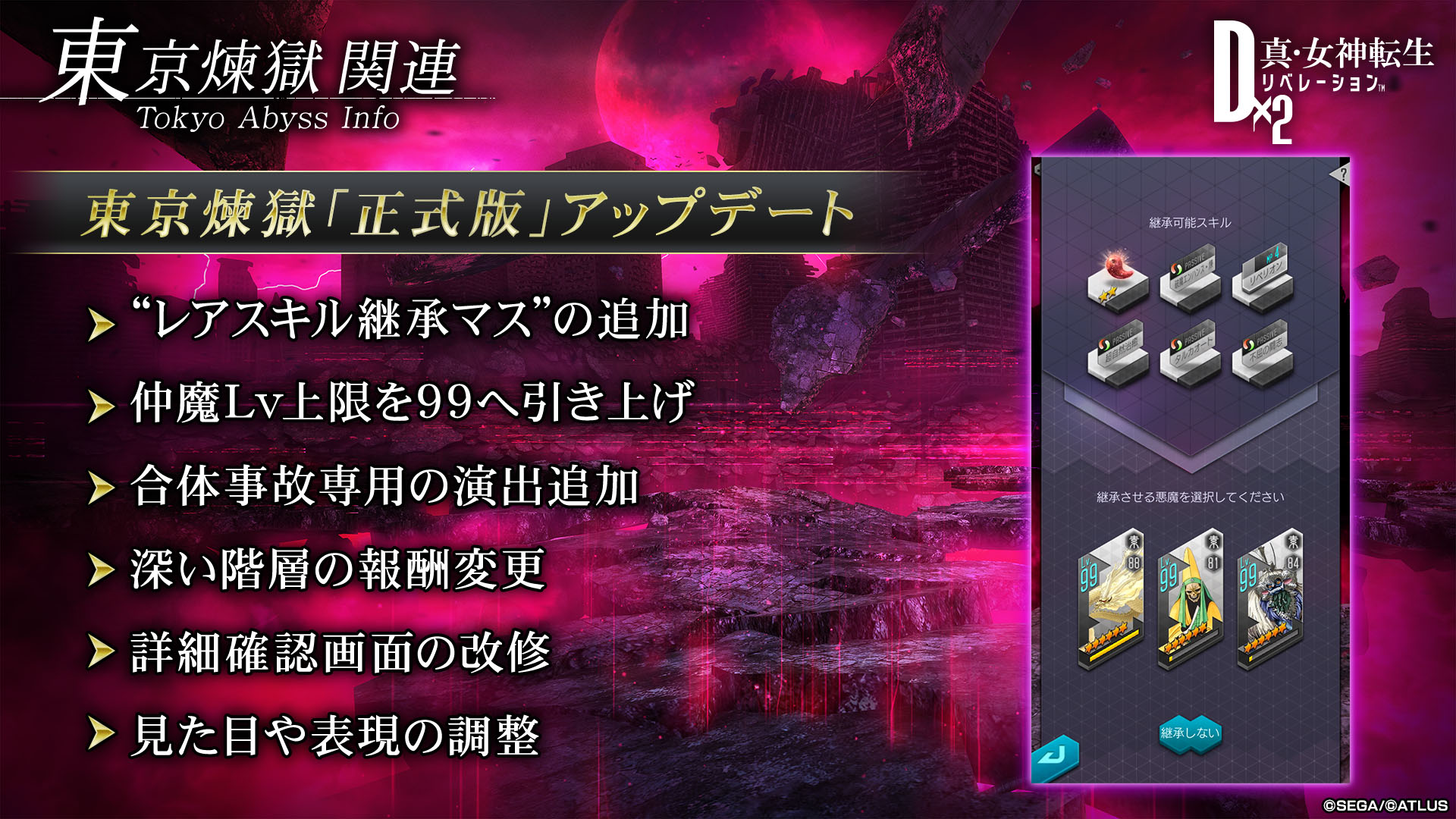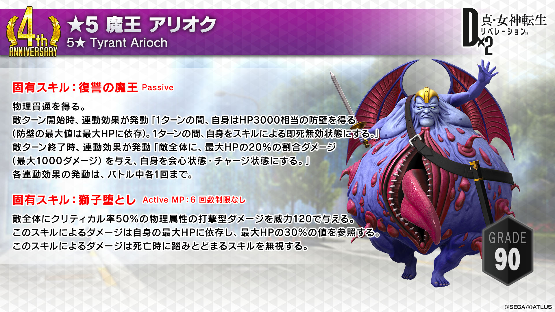 「D×2 真・女神転生 リベレーション」に魔王アリオクが登場。1月20日のアップデートでは“東京煉獄”が正式版として実装へ